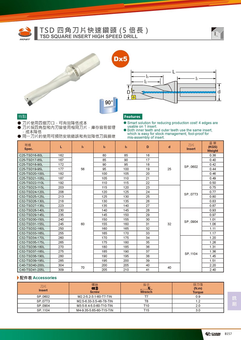 TSD四角刀片快速鉆頭*5D倍徑
