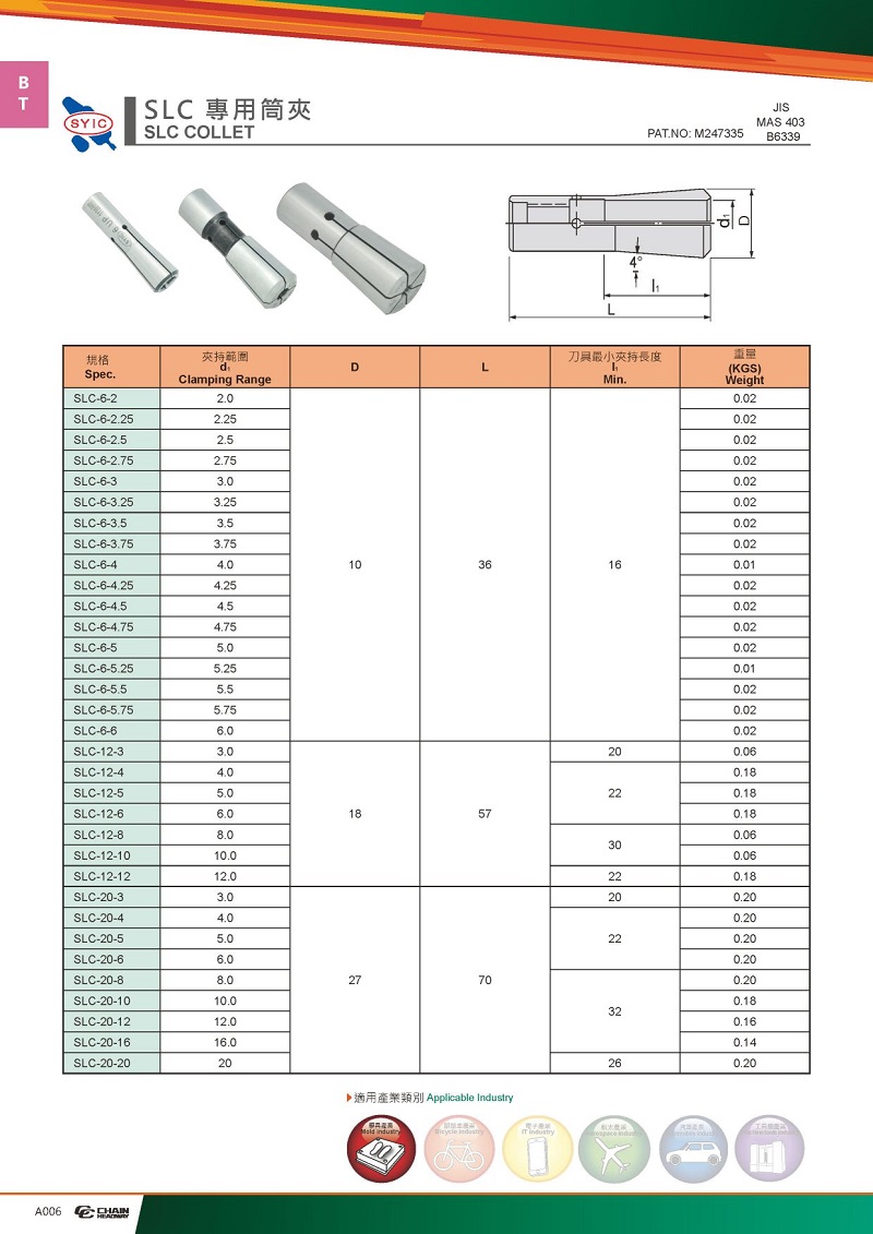 例:SBL20-8   (后拉式筒夾規(guī)格-需夾持柄徑)