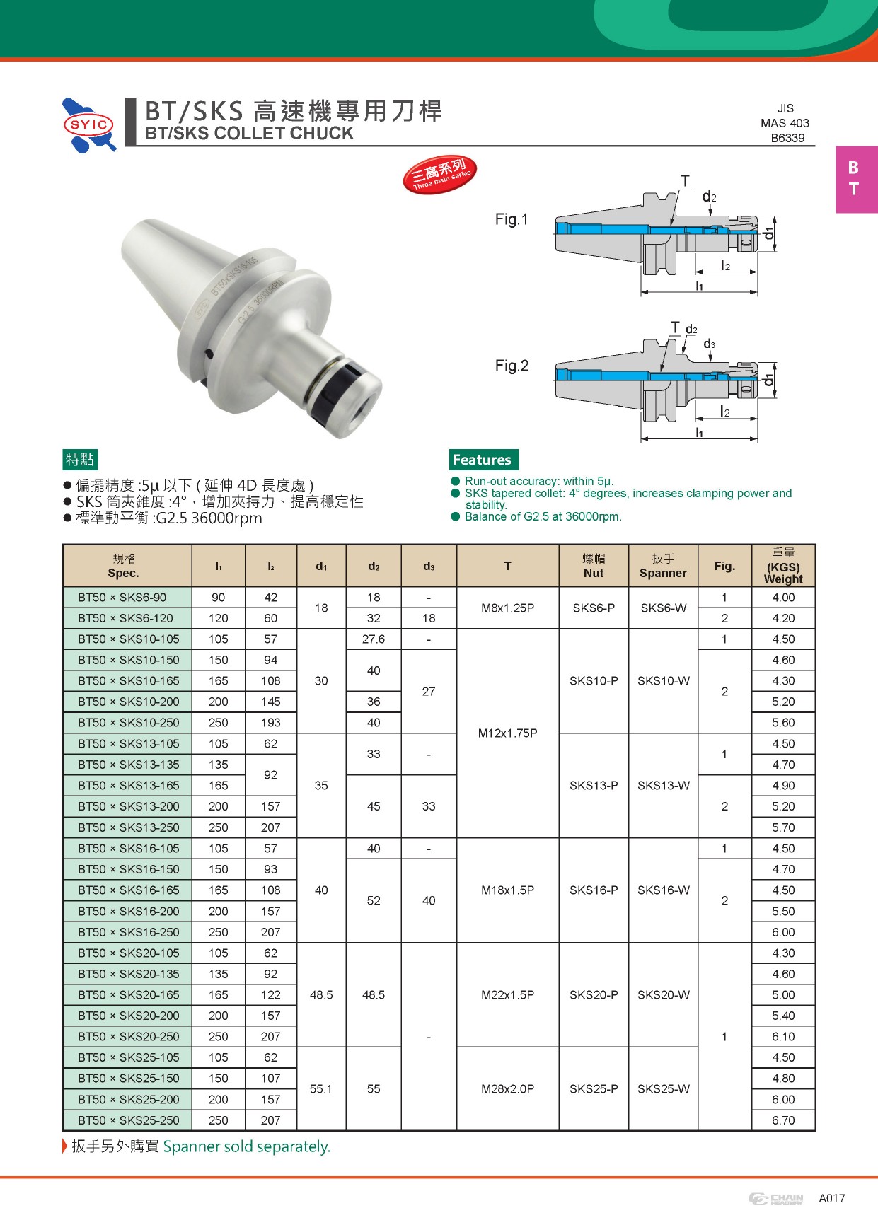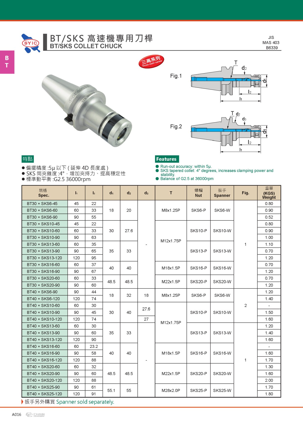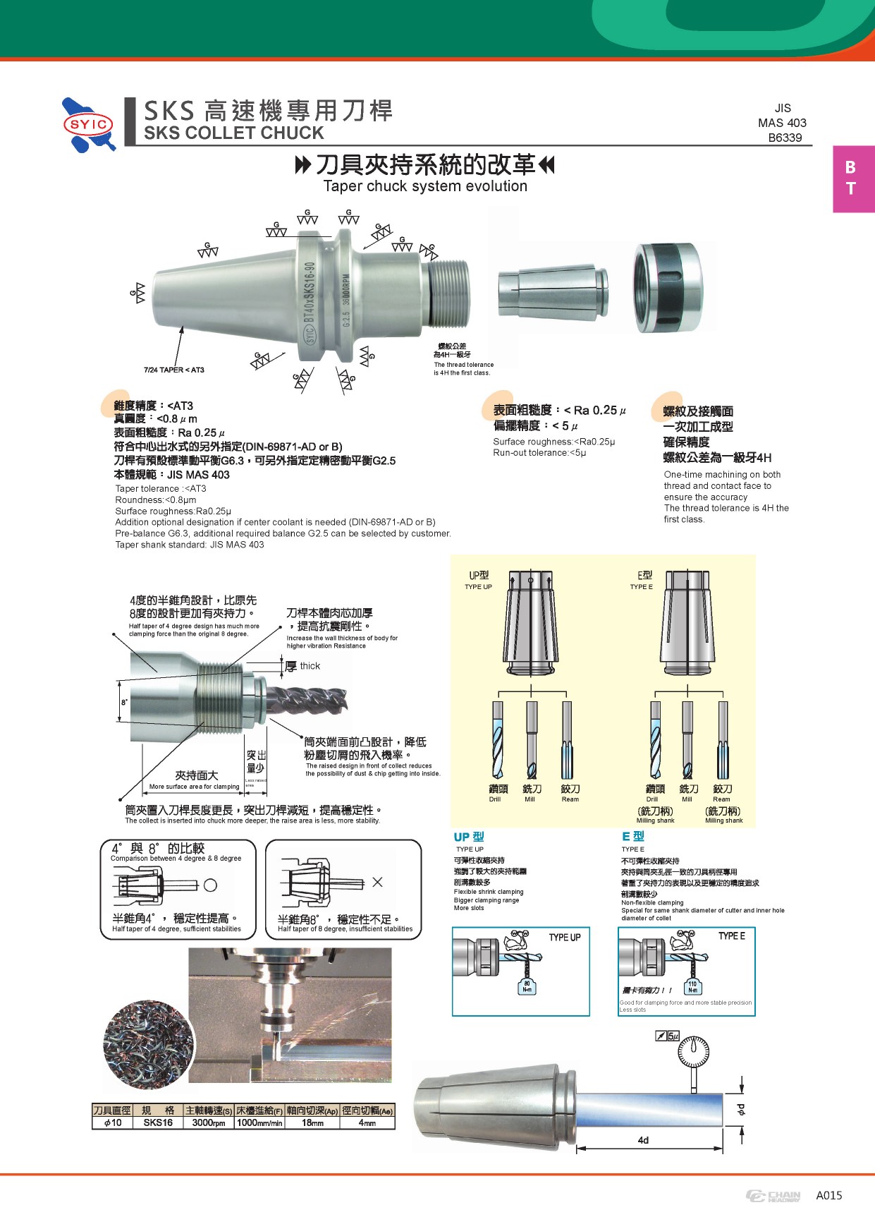 ● SKS筒夾錐度:4°,增加加持力、提高穩(wěn)定性。