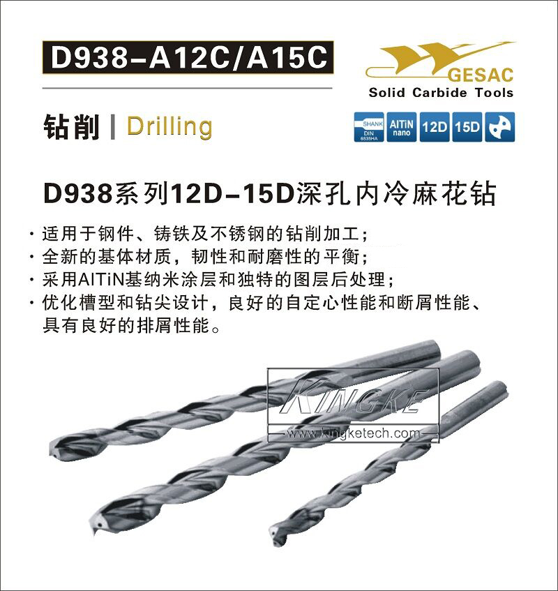 高硬鋼、鑄鐵用高性能鉆頭-D938系