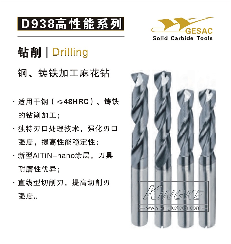 高硬鋼、鑄鐵用高性能鉆頭-D938系