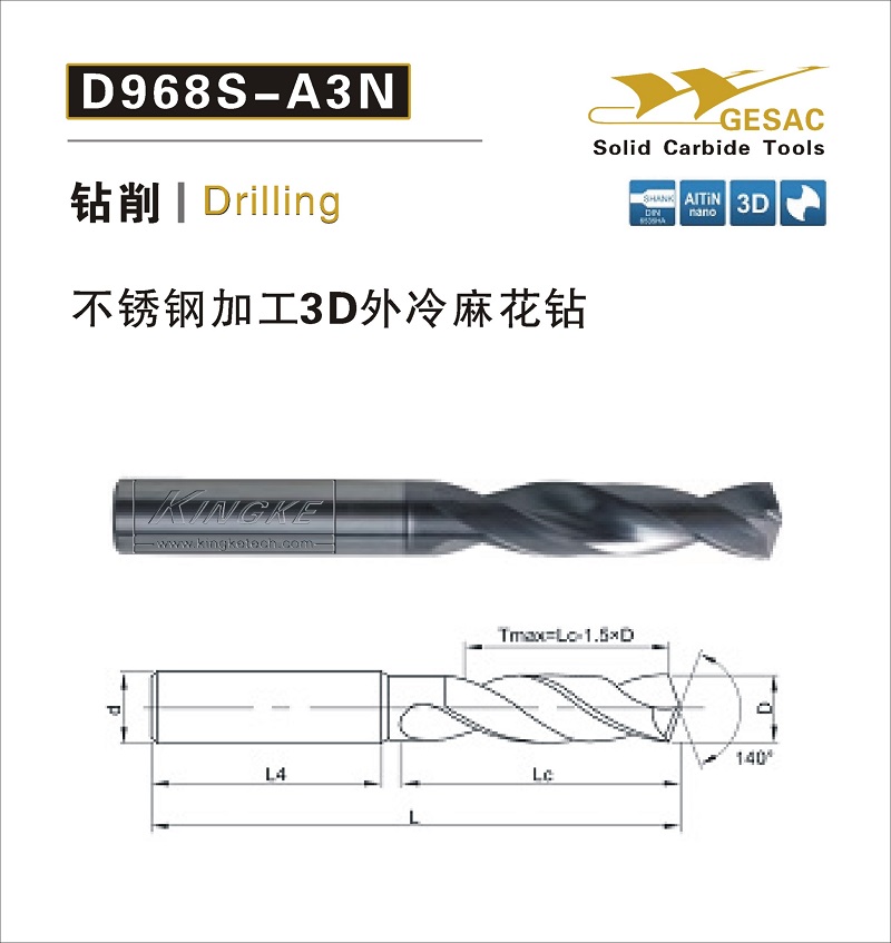 D968-A3C不銹鋼加工3D內(nèi)冷麻花鉆