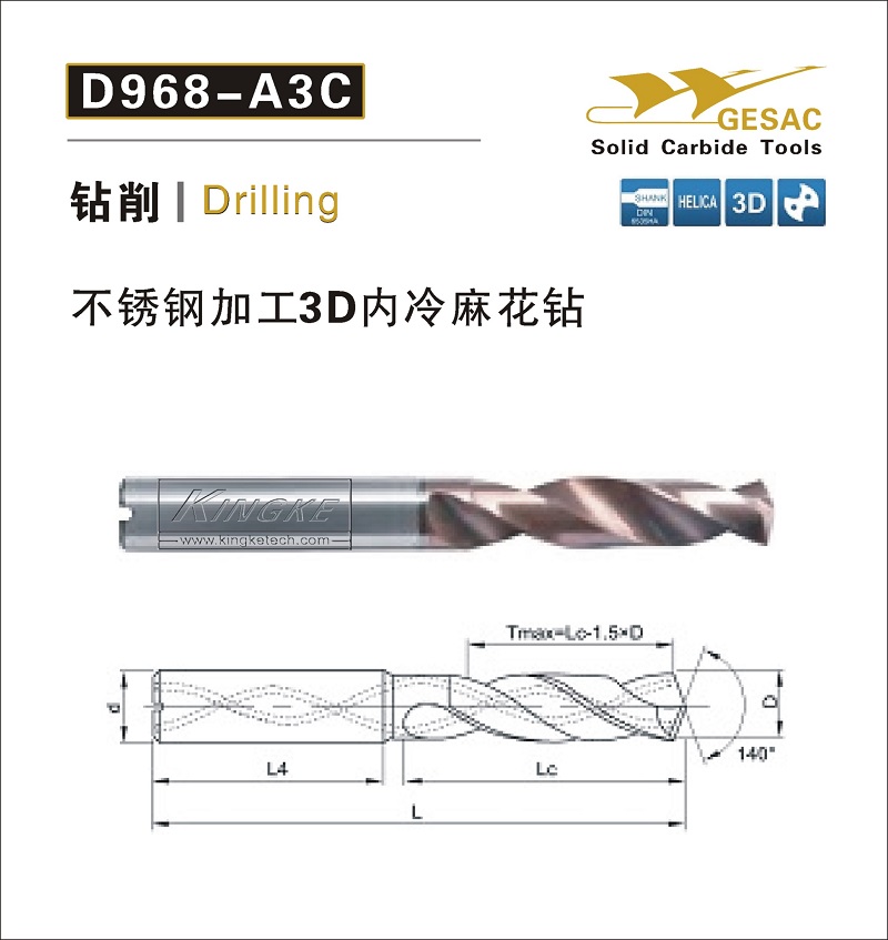 D968S-A3N不銹鋼加工3D外冷麻花鉆