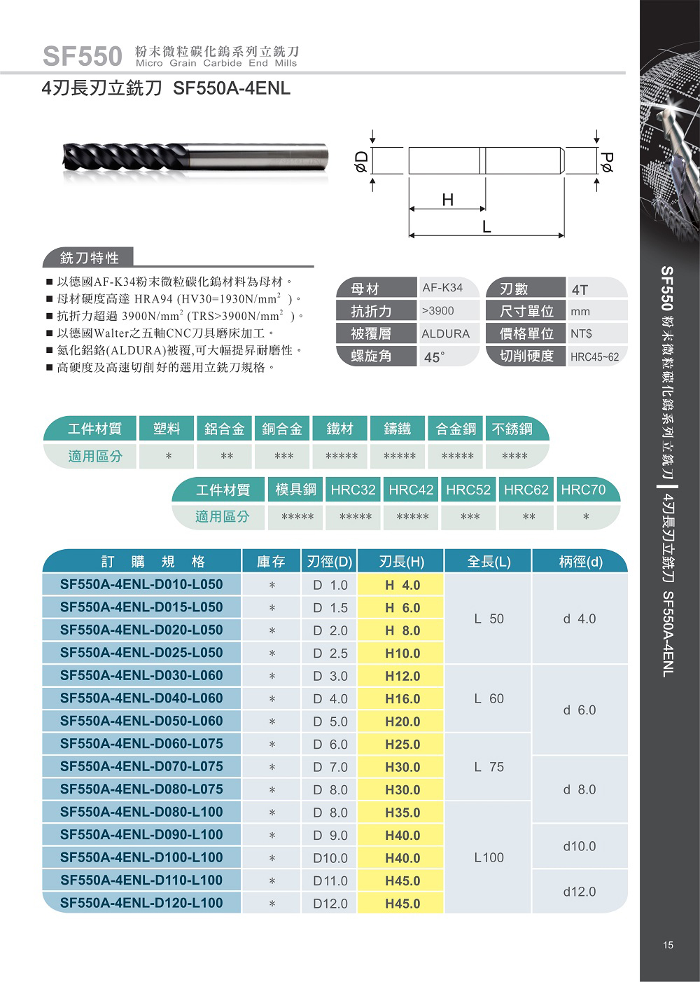 4刃長刃立銑刀 SF550A-4ENL
