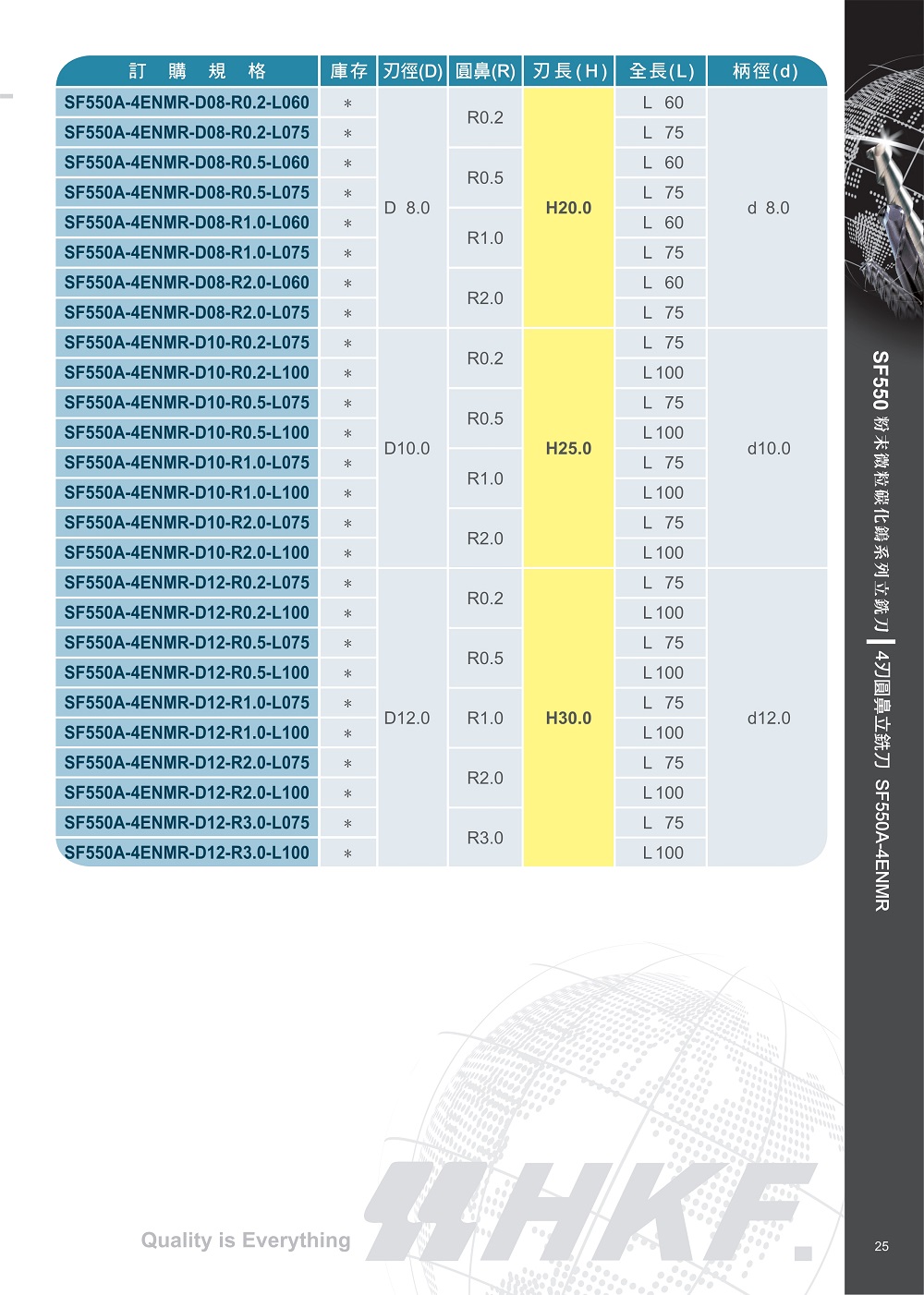 4刃圓鼻立銑刀 SF550A-4ENMR