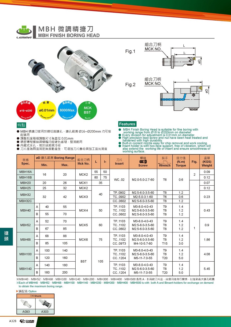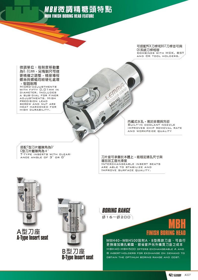 6.除MBH16A,MBH16B,MBH2O,MBH25,MBH32,MBH32C,其余均為AB兩款刀片座,由使用者自行更換,以達到范圍內(nèi)大鏜孔,經(jīng)濟實惠;