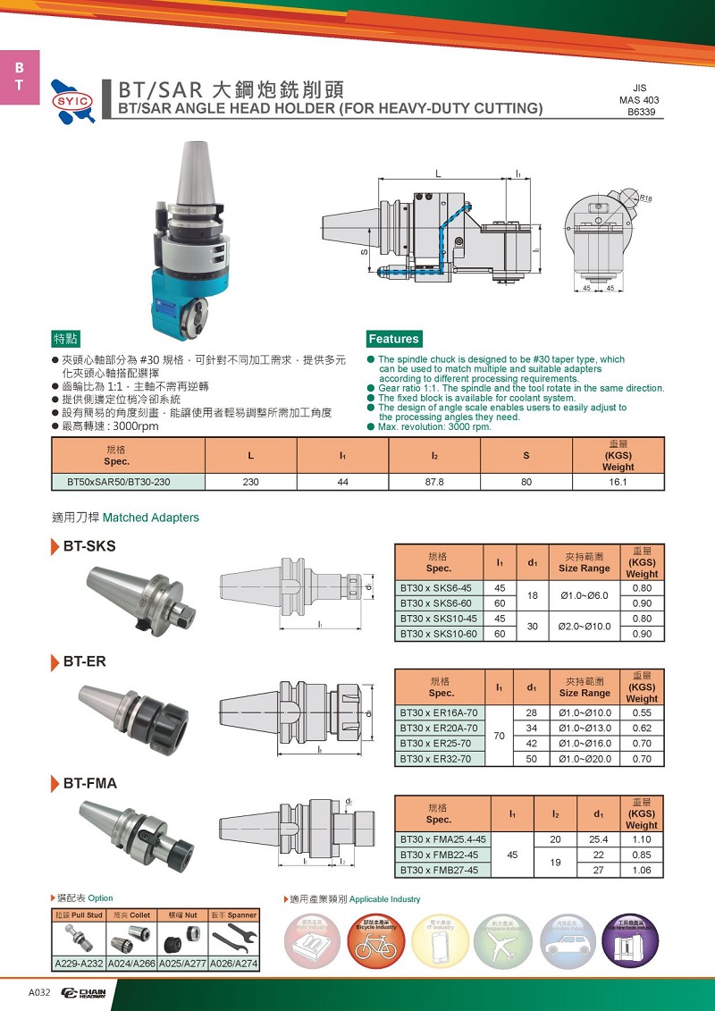 1.夾頭心軸部分為#30規(guī)格,可針對(duì)不同加工需求,提供多元化夾頭心軸搭配選擇;