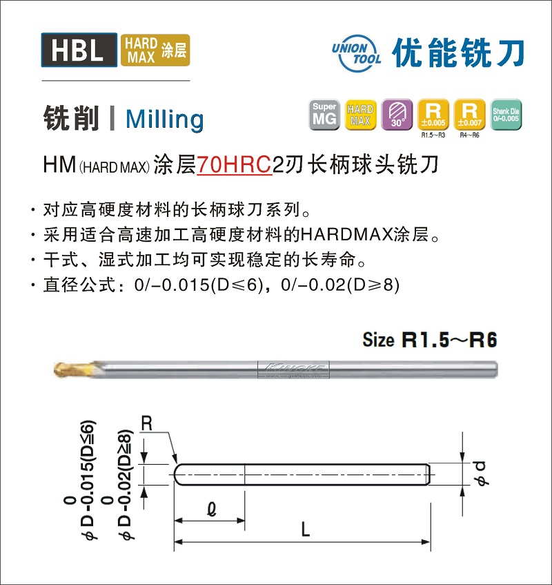HBL HM涂層HRC70兩刃長(zhǎng)柄球刀