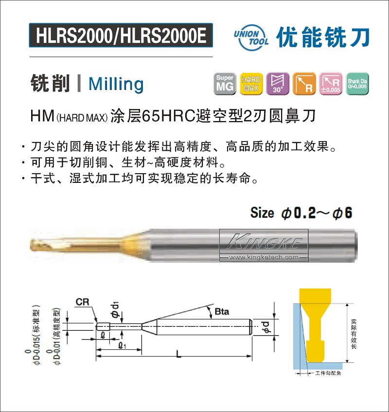 HLRS2000 HM涂層HRC65避空型2刃圓鼻刀