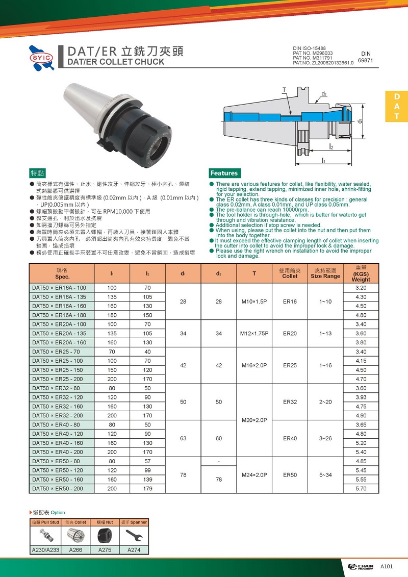 2.彈性筒夾偏擺有標(biāo)準(zhǔn)級(jí)(0.02mm以內(nèi)),A級(jí)(0.01mm以內(nèi)),UP級(jí)(0.005mm以內(nèi))