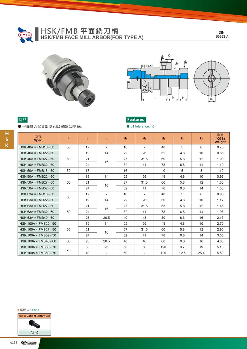 2. 冷卻方式:水溶性乳化液、油冷、MQL微量潤滑為佳冷卻方式。(若需刀盤出水,需另購止水螺絲)