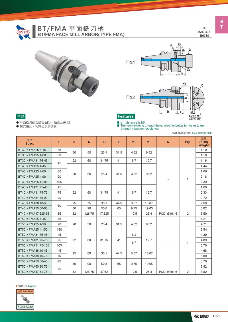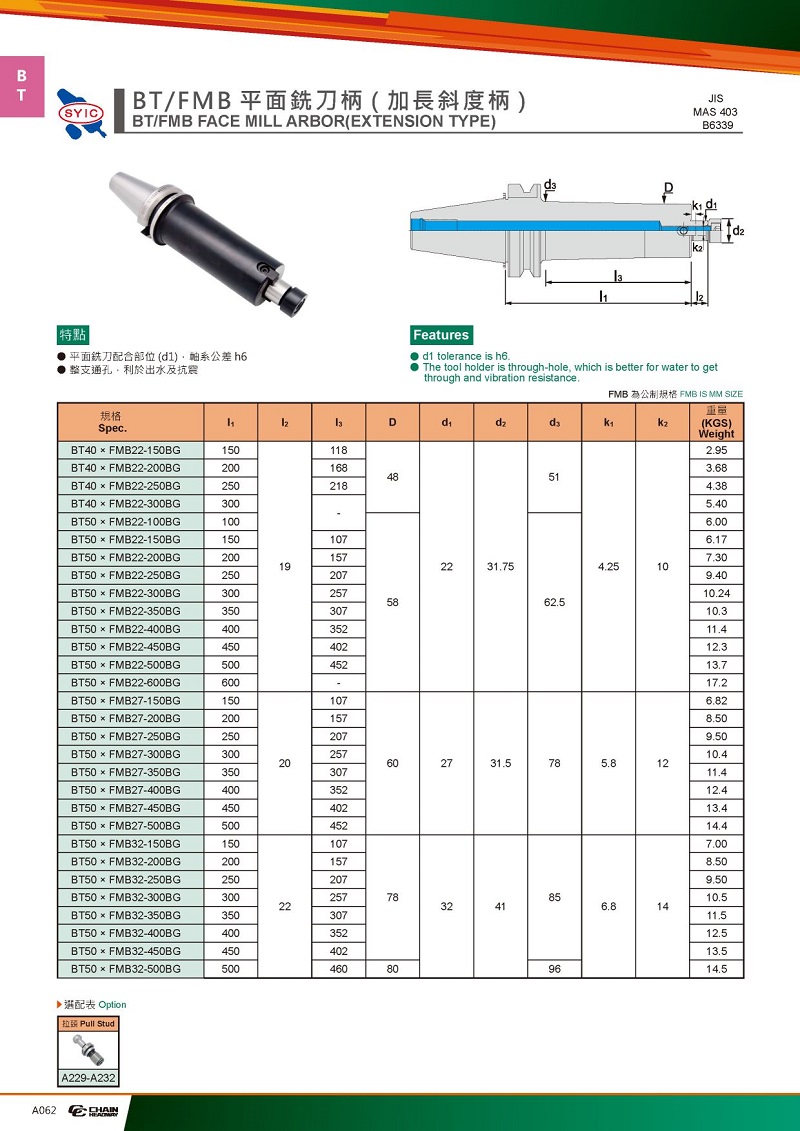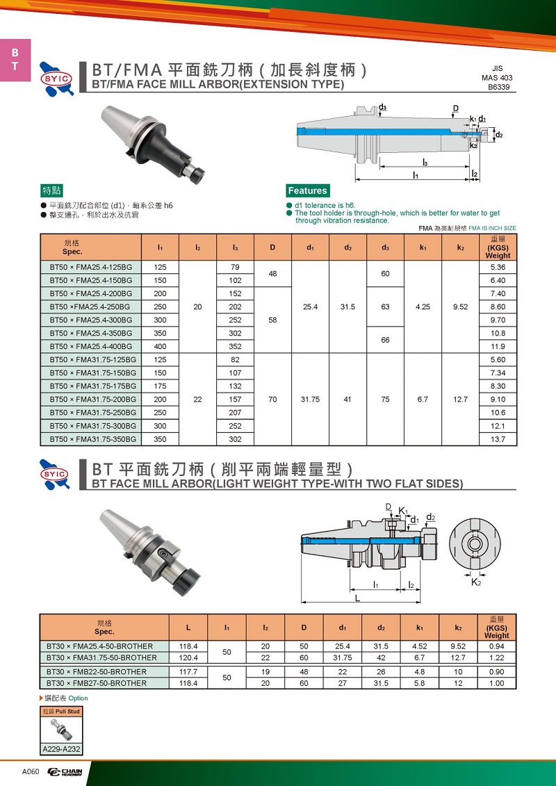 1.整支通孔,利于出水與抗震; 2.刀柄接口分A型和B型,A型為英制接口,B型為公制接口; 3.與小直徑刀盤連接,為單軸螺絲鎖緊;與大直徑刀盤連接,為四孔螺絲鎖緊; 4.最長刀柄懸伸500,滿