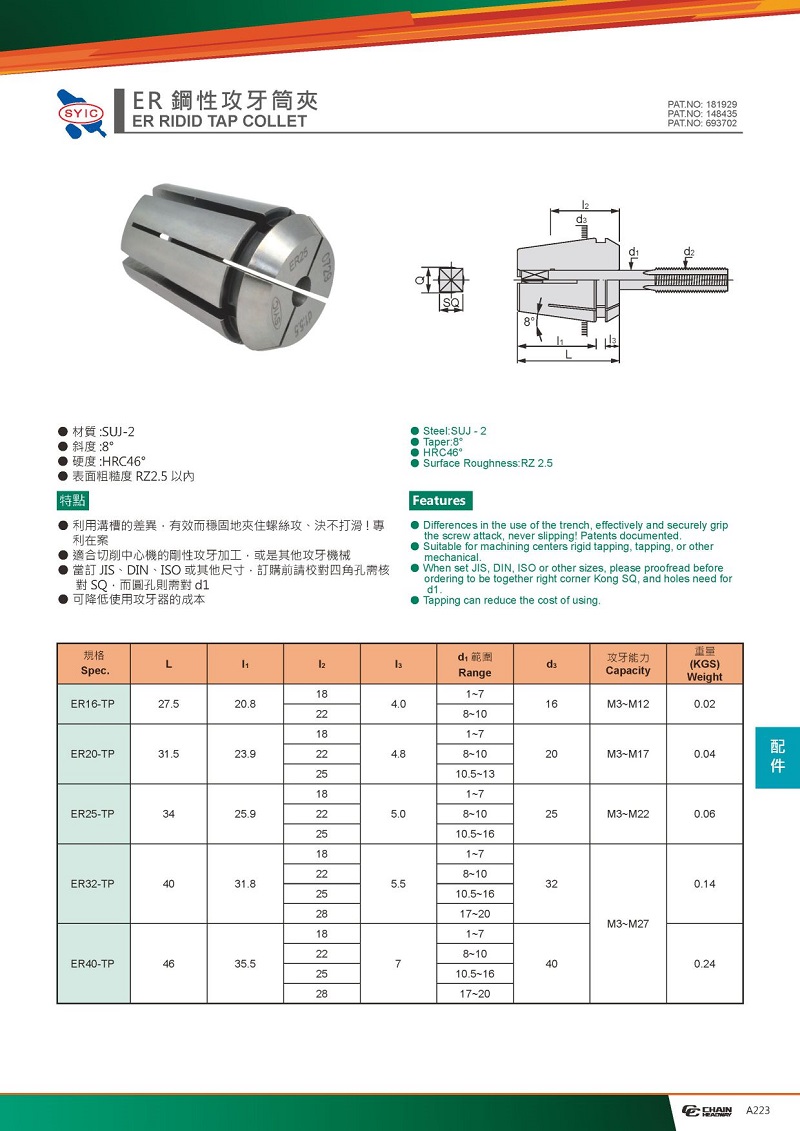 ER剛性攻牙筒夾