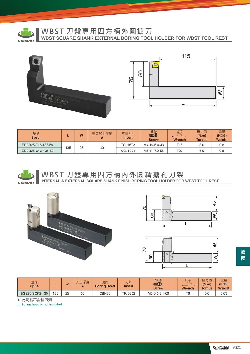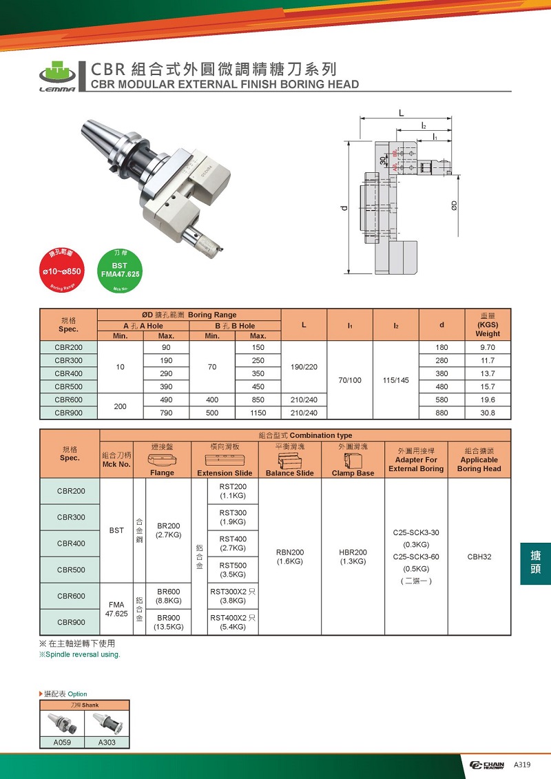 CBR組合式外圓鏜孔刀,鏜孔范圍為10-1150,使用過程中,主軸需逆轉(zhuǎn);