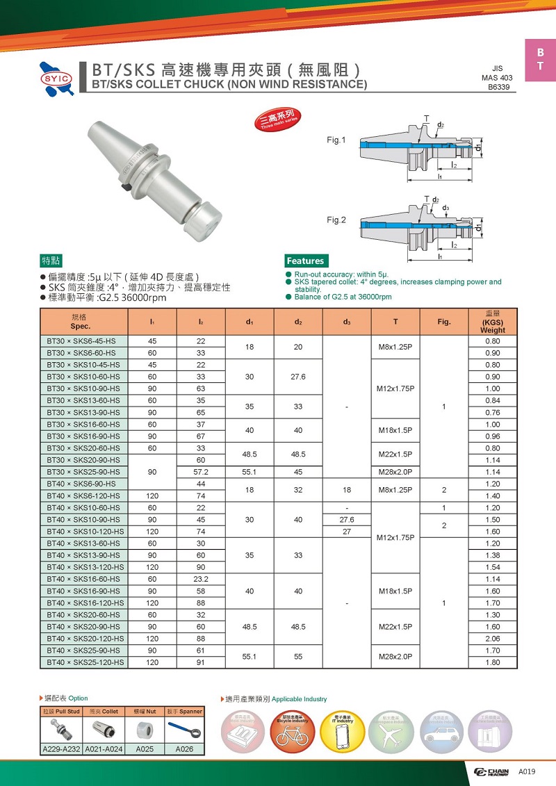 BT/SKS高速機專用刀柄(無風(fēng)阻)