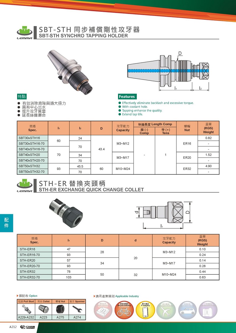SBT/BT STH同步補(bǔ)償剛性攻牙器(也叫攻絲刀柄)