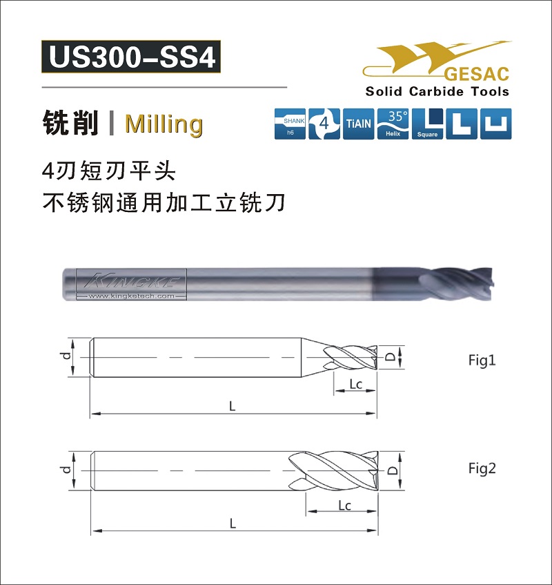 US300-SS44刃短刃平頭不銹鋼加工立銑刀