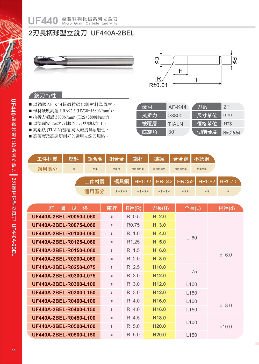4刃圓鼻立銑刀 UF440A-4ENMR